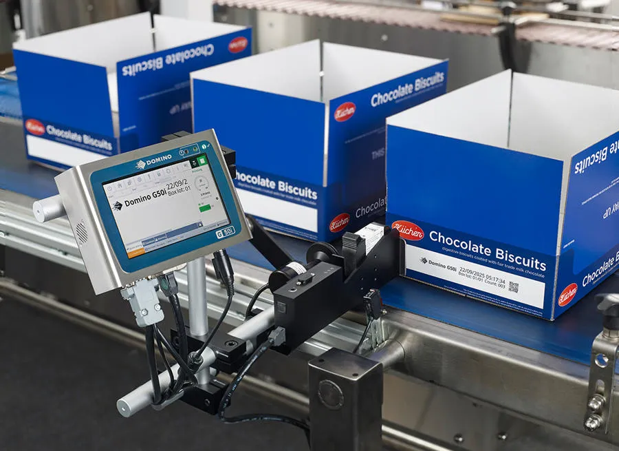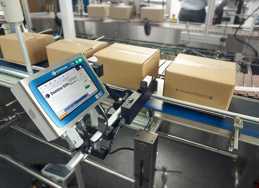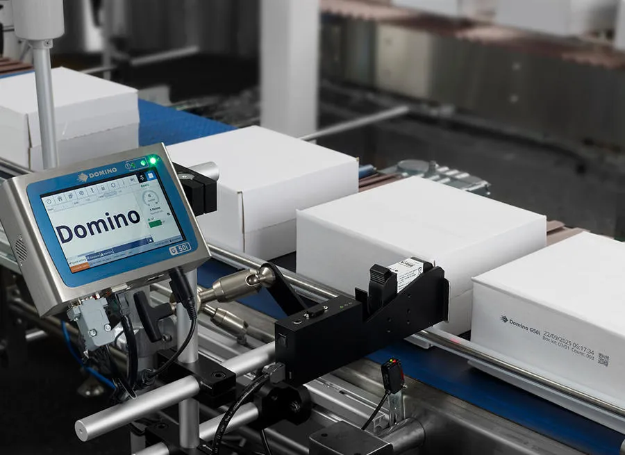 • Domino 墨水喷印高对比度二维码,获得 A 级可读性 (ISO 15415)。
